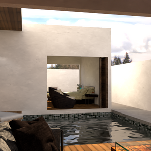 Esta casa se diseño al rededor de la alberca, es por eso que todas las zonas tienen un acceso directo a la alberca que se encuentra en el punto central de la casa, tanto la sala, el comedor y la cocina cómo las 3 habitaciones.